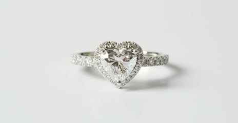 Lab Grown Heart Diamond Solitaire Ring with Halo & Half Eternity Band